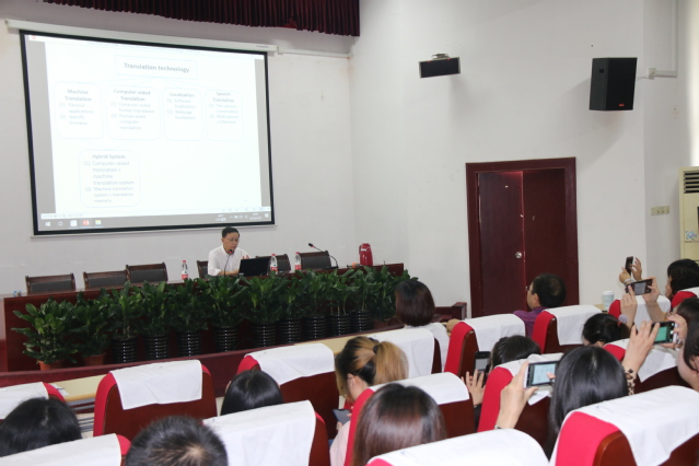 应beat365vip官网登录入口beat365vip官网登录入口刘芹院长邀请,香港中文大学翻译系教授、计算机辅助翻译文学硕士课程主任、翻译科技研究中心主任陈善伟教授莅临beat365beat365vip官网登录入口,于2019年5月27日和29日分别在beat365vip官网登录入口报告厅和306会议室为教师生带来了题为“重温翻译技术之未来”和“计算机辅助翻译自动化”的学术报告。报告由姜诚副教授进行主持。