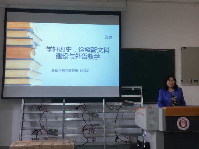 英语(科技翻译)系的党员教师们全程认真听讲,在对学院历史、中国历史的重温中获得鼓舞,坚定努力奋斗的决心。