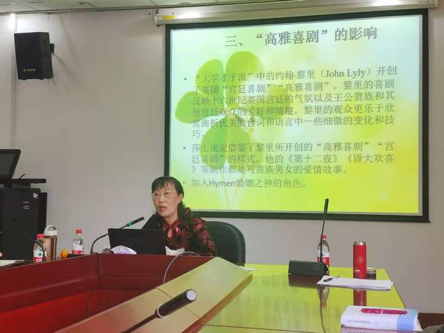 11月17日下午1点至3点,beat365vip官网登录入口英语系(中美合作)邀请到了上海大学文学院副教授、中国外国文学学会莎士比亚研究会理事张薇副教授作了关于莎士比亚浪漫喜剧《皆大欢喜》的讲座。讲座由英语系(中美合作)系主任禹一奇副教授主持。部分教师及beat365vip官网登录入口莎剧社同学来到beat365vip官网登录入口306参加讲座并与张薇副教授进行关于莎士比亚戏剧的交流。