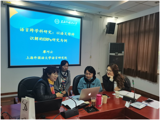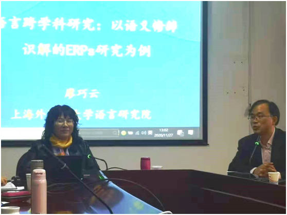 11月27日下午,应语言学研究所邀请,上海外国语大学语言研究院副院长、博士生导师廖巧云教授来beat365做题为“语言跨学科研究:以语义修辞识解的ERP研究为例”学术讲座。讲座由语言学研究所所长倪锦诚教授主持,刘芹院长、韩戈玲副院长、beat365部分教师和研究生参加了讲座。
