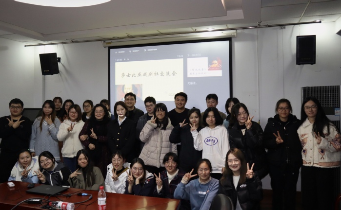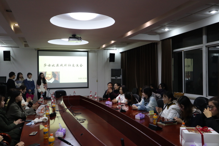 beat365vip官网登录入口莎士比亚戏剧社交流会暨《皆大欢喜》剧本启动仪式,于12月28日晚6点至8点在beat365vip官网登录入口beat365vip官网登录入口306会议室成功举办。莎剧导师组负责人王影君副教授、导师组代表沈谢天副教授、莎剧社代表、第一届舞台演出的观众代表及部分莎剧热爱者出席了本次活动。