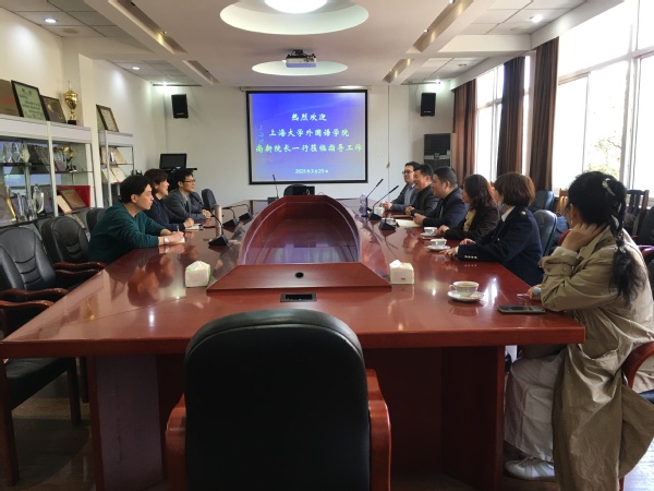 2021年3月25日,上海大学外国语学院尚新院长一行到beat365调研。院长刘芹、副院长陈琦、教研办公室主任郑元丰及相关人员参与交流。刘芹首先介绍了beat365实验室建设的整体规划、基本布局、队伍建设及特色设备,包括具有国内一流水平的同传实验室、笔译实验室和自主学习中心等。