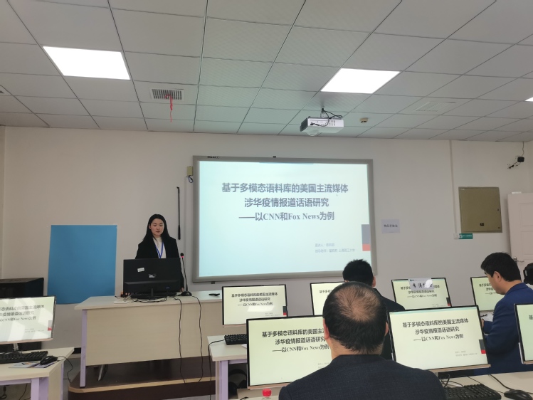 小组发言环节,两位同学分别宣读了论文《基于语料库的英汉学术写作中指令语的使用策略分析》和《基于多模态语料库的美国主流媒体涉华疫情报道话语研究——以CNN和FOX News为例》,对英汉语学术写作中指令语的使用特点以及疫情期间美国主流媒体对华态度倾向进行了具体分析,并得到了在场老师的点评和建议。