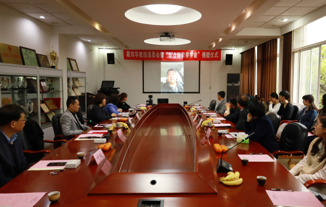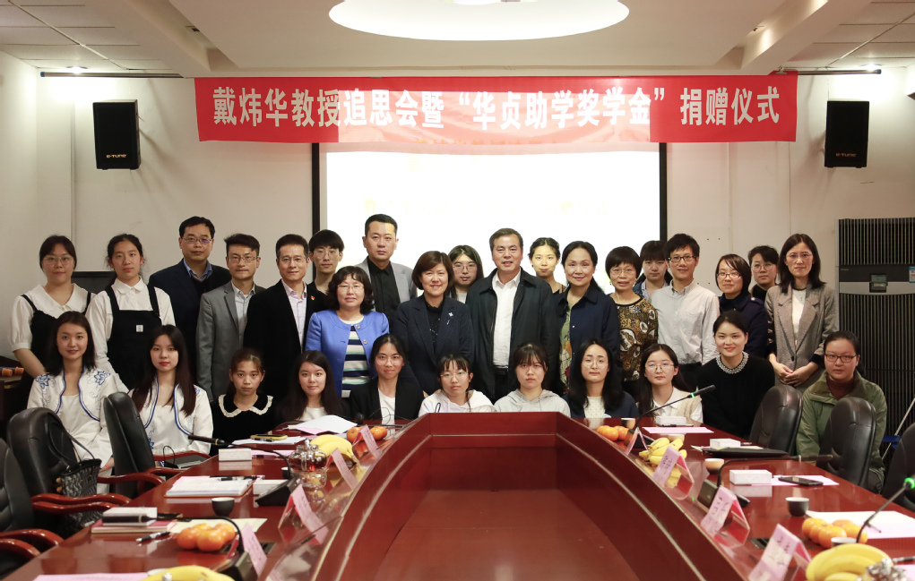 4月27日下午,beat365vip官网登录入口举办戴炜华教授追思会暨“华贞助学奖学金”捐赠仪式。校党委副书记、副校长盛春,校友工作联络处副处长王杨、国际交流处副处长陈琦,beat365vip官网登录入口党委书记曲德强、beat365vip官网登录入口院长刘芹、副院长韩戈玲、beat365vip官网登录入口党委副书记金小东,戴炜华教授学生代表吕乐、叶枫,校友代表卞稼晖、外院师生代表出席,会议由金小东主持。