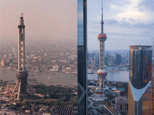 二等奖作品中孙芊卉同学关于浦东浦西发展变化的对比照片。