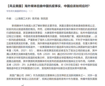 在备战市赛的过程中,项目组成员不放过任何“加分项”。陈天皓、陈凯丽同学撰写的“海外媒体扭曲中国抗疫事实,中国应该如何应对?”在华东师范大学美国研究中心公众号发表;陈凯丽、董丽媛同学在“三峡大学语料库研究中心揭牌仪式暨语言数据应用高端论坛”宣读课题相关论文。