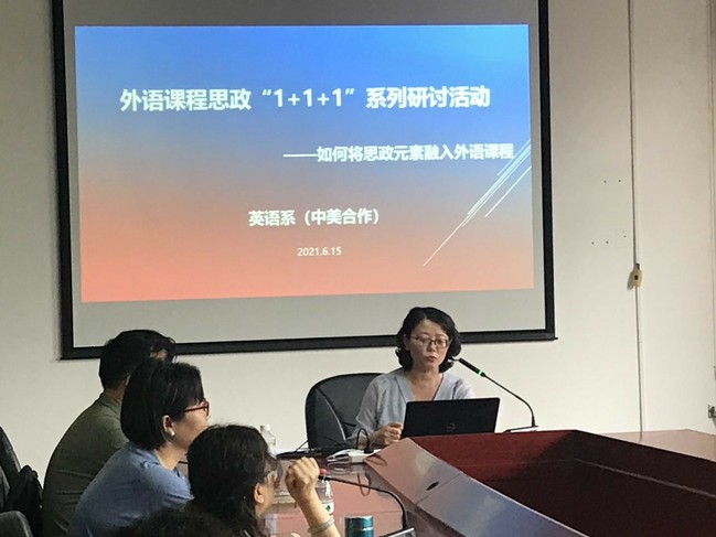 6月15日中午12时30分许,英语系(中美合作)于beat365vip官网登录入口306会议室举办课程思政“1+1+1”系列研讨活动。活动由系主任黄芳老师主持,本系全体教师出席并参与了研讨。