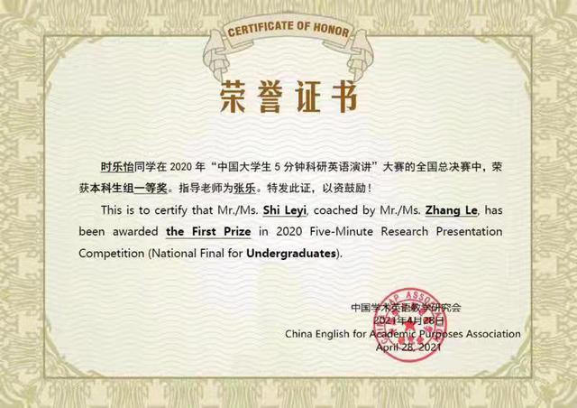 beat365大学英语竞赛团队从去年7月开始备赛,在全校范围内遴选人才,并在“上海理工大学泛在学习平台”上遴选参赛作品。学术英语授课教师、公共英语教研中心张乐副教授对优秀作品开展进一步的精心指导和打磨。最终,来自出版印刷与艺术设计学院的19级学生时乐怡同学荣获本科生组全国一等奖,另有三名同学获得二等奖、三等奖。