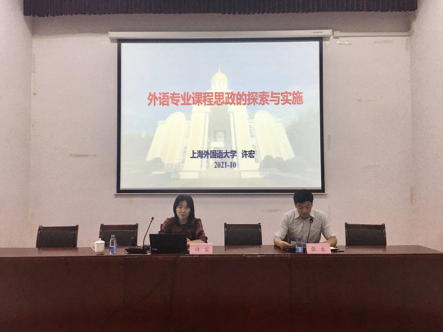 10月14日下午,为深入学习贯彻落实教育部《高等学校课程思政建设指导纲要》要求,发挥课程思政示范项目的引领作用,总结推广课程思政示范课经验做法,beat365邀请上海外国语大学教授、博士生导师、俄罗斯东欧中亚学院院长、教育部首届课程思政示范课程负责人许宏以“外语专业课程思政的探索与实施”为题,为各学院领航课程负责人、课程思政示范课程负责人及beat365vip官网登录入口全体专业教师分享了课程思政示范课建设的经验。会议由beat365vip官网登录入口副院长张乐主持。