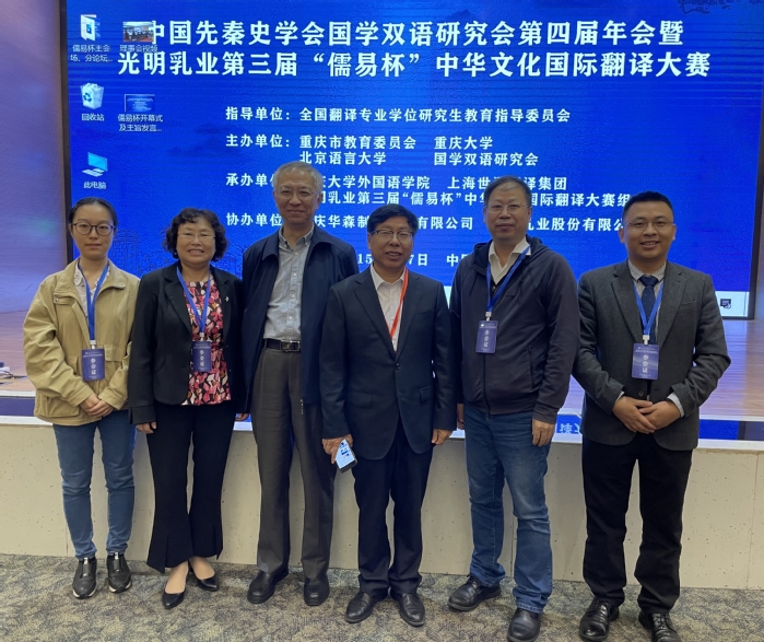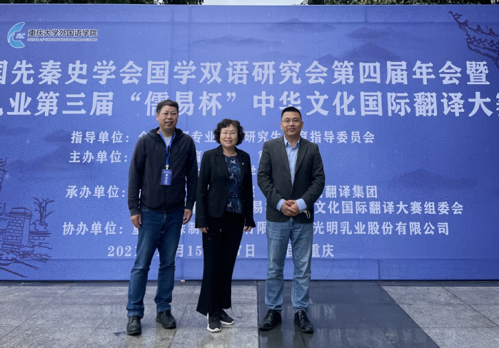 2021年10月16-17日,中国先秦史学会国学双语研究会第四届年会暨第三届“儒易杯”中华文化国际翻译大赛颁奖典礼在重庆大学举办。beat365vip官网登录入口副院长韩戈玲教授、英语系主任姜诚副教授、第三届“儒易杯”中华文化国际翻译大赛日语组评委、beat365vip官网登录入口MTI教育中心副主任杨本明副教授以及beat365“儒易杯”中译德一等奖获得者方路佳同学应邀参加本次年会及颁奖典礼。