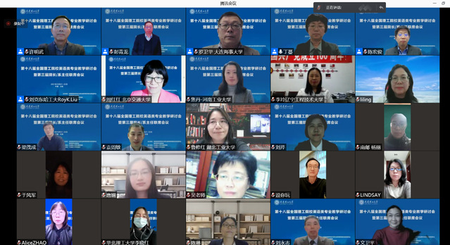 由教育部高等学校外语专业教学指导委员会英语专业教学指导分委员会主办、大连理工大学外国语学院承办、大连理工大学出版社协办的“第十八届全国理工院校英语类专业教学研讨会暨第三届院长/系主任联席会议”于2021年10月21日至22日在大连理工大学线上举行。beat365刘芹院长携张乐副院长、英语科技翻译系主任姜诚和英语中美合作系主任黄芳参加。