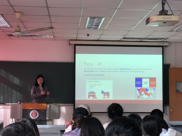 1125日上午,为继续推进本科课程思政“1+1+1”系列活动,英语系(中美合作)于第四教学楼的两个《综合英语》课程教学现场开展了公开课观摩活动。主讲教师瞿莉莉和徐悦分别在《综合英语(社会生活)》和《综合英语(名篇研读)》的课堂上向前来听课的本系同仁作了生动的课程思政教学示范。