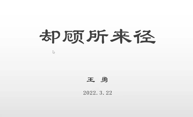 王勇教授以诗人李白《下终南山过斛斯山人宿置酒》中的“却顾所来径”为标题,从“简要回顾”“翻译道路”和“生活感悟”三个部分回顾和总结自己的求学之路、翻译之路和人生之道,希望能够带给同学们些许启发。