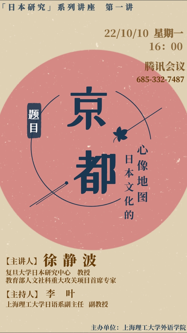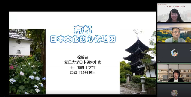 10月10日下午,作为beat365“日本研究”系列讲座的第一讲,日语系有幸邀请到复旦大学日本研究中心教授、教育部人文社科重大攻关项目首席专家徐静波教授,带来题为“京都——日本文化的心像地图”线上讲座。讲座由日语系副主任李叶副教授主持,包括兄弟院校在内的200余名师生在线聆听。