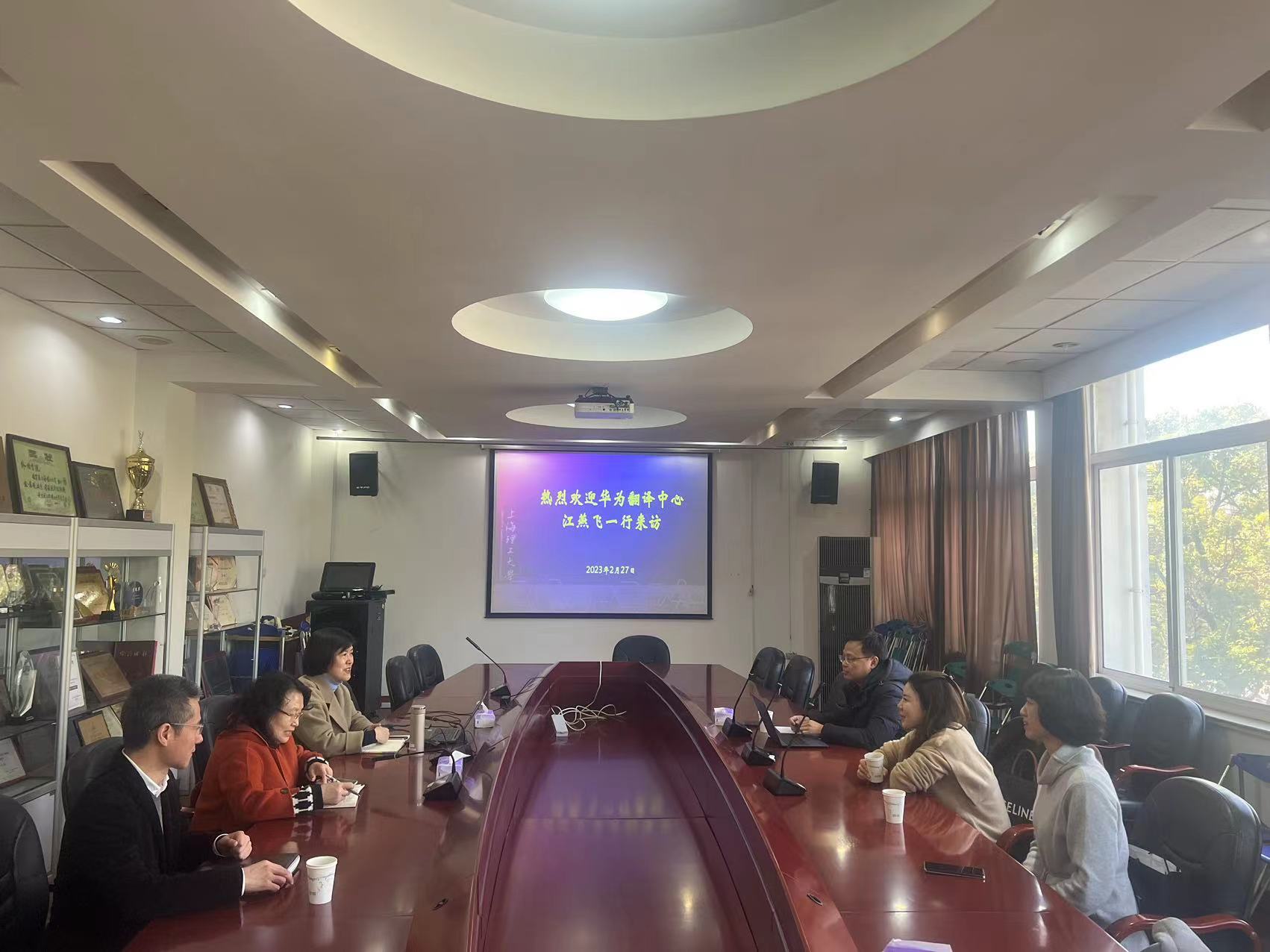2月27日下午,受学院邀请,华为翻译中心主任江燕飞一行来访beat365vip官网登录入口,翻译中心上海负责人张丽,beat365研究生校友、华为翻译中心资深译审李晓春同行。beat365vip官网登录入口院长刘芹、副院长韩戈玲、党委副书记金小东,以及党政综合办公室主任郑元丰参加了会谈。