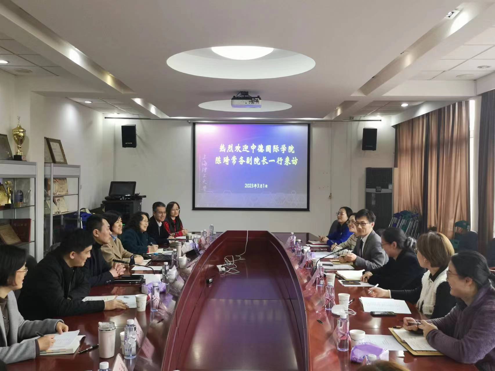 3月1日下午,中德国际学院常务副院长陈琦一行来beat365开展工作交流。beat365vip官网登录入口全体领导班子,德语系主任和办公室相关人员参加了交流会。会议由党委书记曲德强主持。