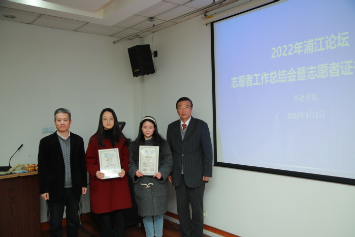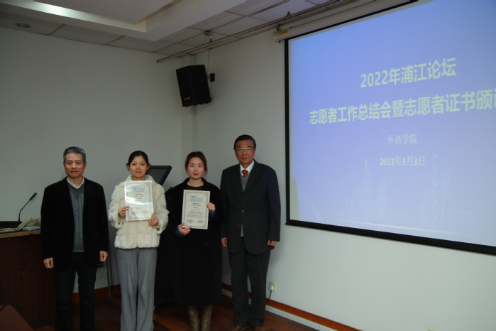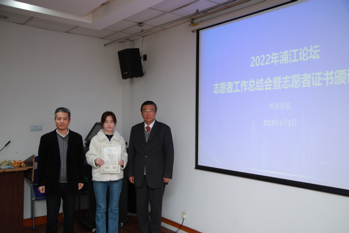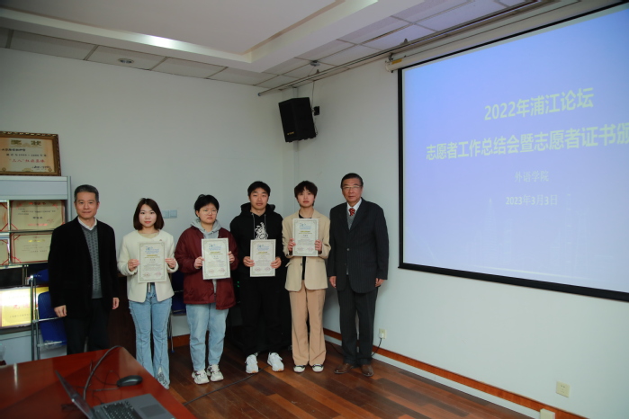 beat365vip官网登录入口共有26位同学为本次论坛提供了志愿服务,利用自己的专业知识助力论坛的顺利举行。3月3日,2022年浦江论坛志愿者工作总结会和志愿者证书颁证仪式在beat365vip官网登录入口306会议室召开,以表彰为论坛各项活动做出卓越贡献的志愿者们,外交部南南合作促进会上海办事处主任、beat365vip官网登录入口校友会会长洪涌清,beat365vip官网登录入口党委副书记金小东,beat365vip官网登录入口志愿者等出席会议。