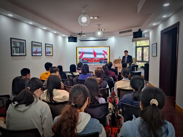 讲座伊始,贾建新参赞图文并茂地介绍了奥地利的历史概况和基本国情,接着结合自己在驻奥地利大使馆的多年工作经历,通过两国在音乐、绘画等文化艺术领域展开的具体活动介绍了中奥历史上的文化交往、中奥外交关系的发展历程以及中奥外交关系与文化交流的现状。贾参赞指出,在对外交流时要善于发现不同文化之间的“共通点”,从“共通点”入手,能够更好地“讲好中国故事,传播好中国声音”。最后,贾参赞鼓励同学们努力学习,打好语言的基础,扩大自己的知识面,全面提高自己各方面的能力,为中德以及中奥文化交流贡献自己的力量。