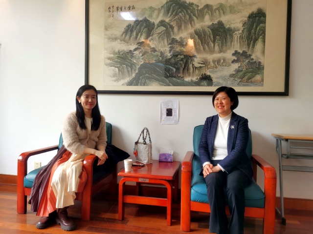 4月25日下午,应beat365vip官网登录入口邀请,英语系(中美合作)2007级优秀校友、电子政务建模仿真国家工程实验室战略投资副总经理卢珏来访beat365,刘芹院长对卢珏的到来表示热烈欢迎,向她对beat365的支持和帮助表示感谢。