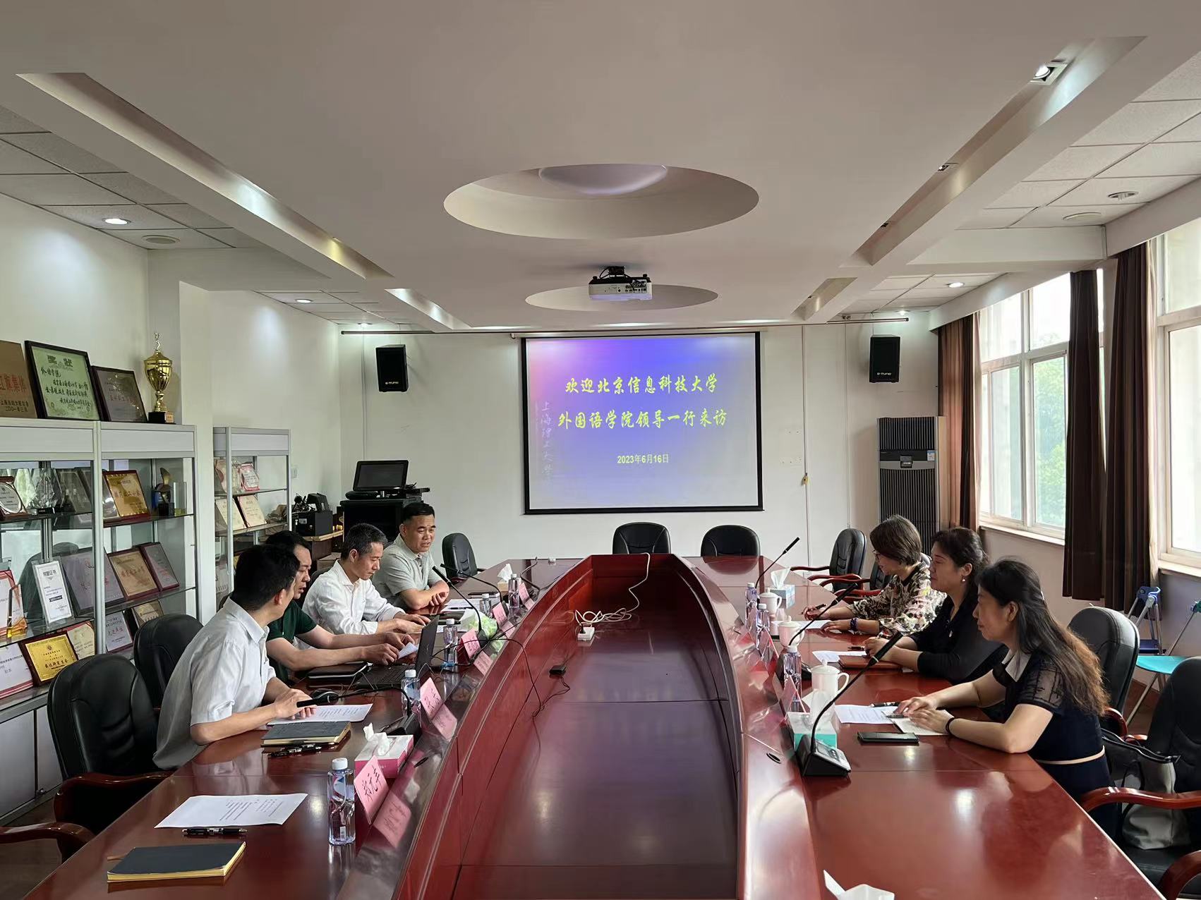 6月16日下午,北京信息科技大学外国语学院党总支书记贺芳一行来院调研交流,副院长肖滨和研究生教学部主任张晓蔓同行。beat365vip官网登录入口党委书记曲德强、党委副书记金小东、副院长张乐、MTI教育中心主任王勇和办公室相关人员参加了交流。会议由张乐主持。