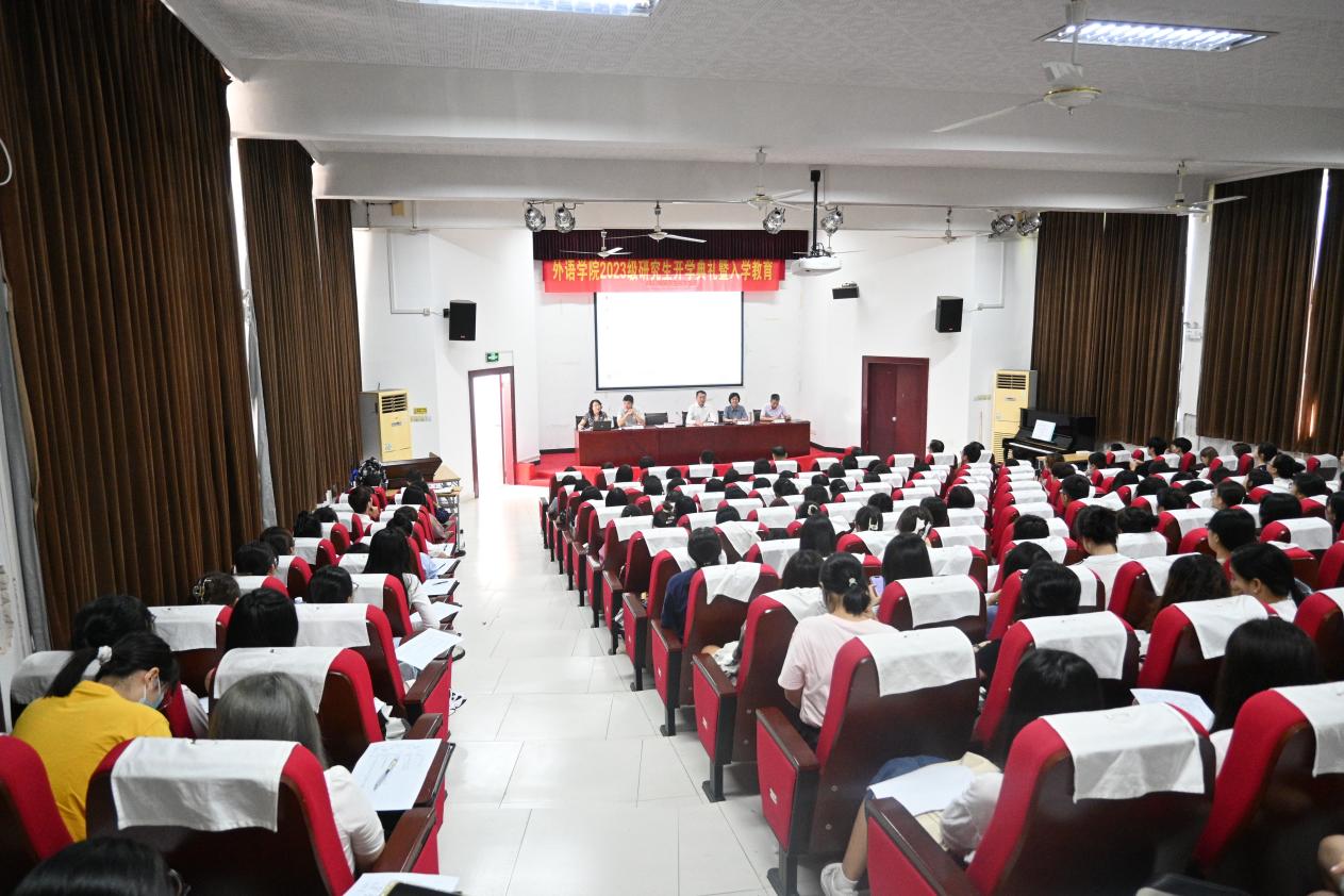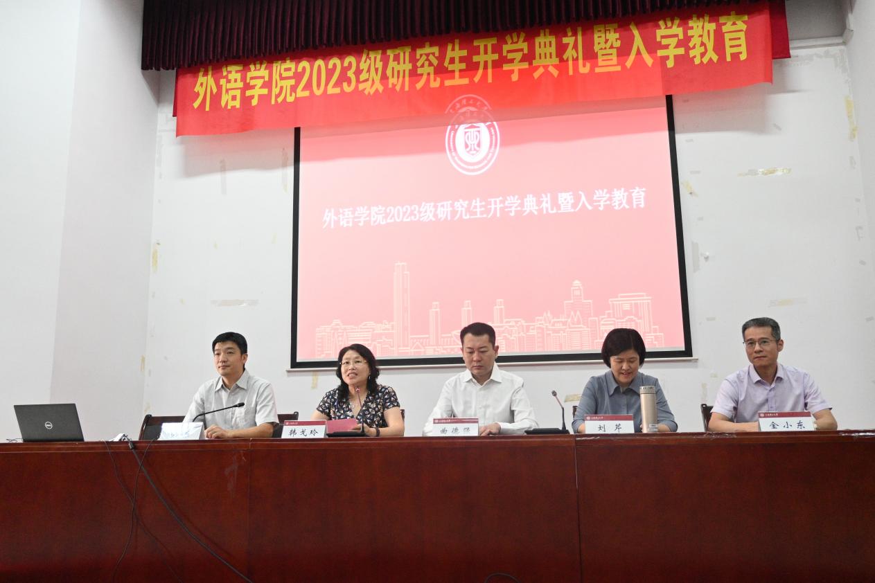 9月4日上午8:30,beat365vip官网登录入口2023级研究生开学典礼在外语楼报告厅隆重召开。学院党委书记曲德强、院长刘芹、副院长韩戈玲、党委副书记金小东、副院长张乐及全体研究生导师出席本次大会,大会由副院长韩戈玲主持。
