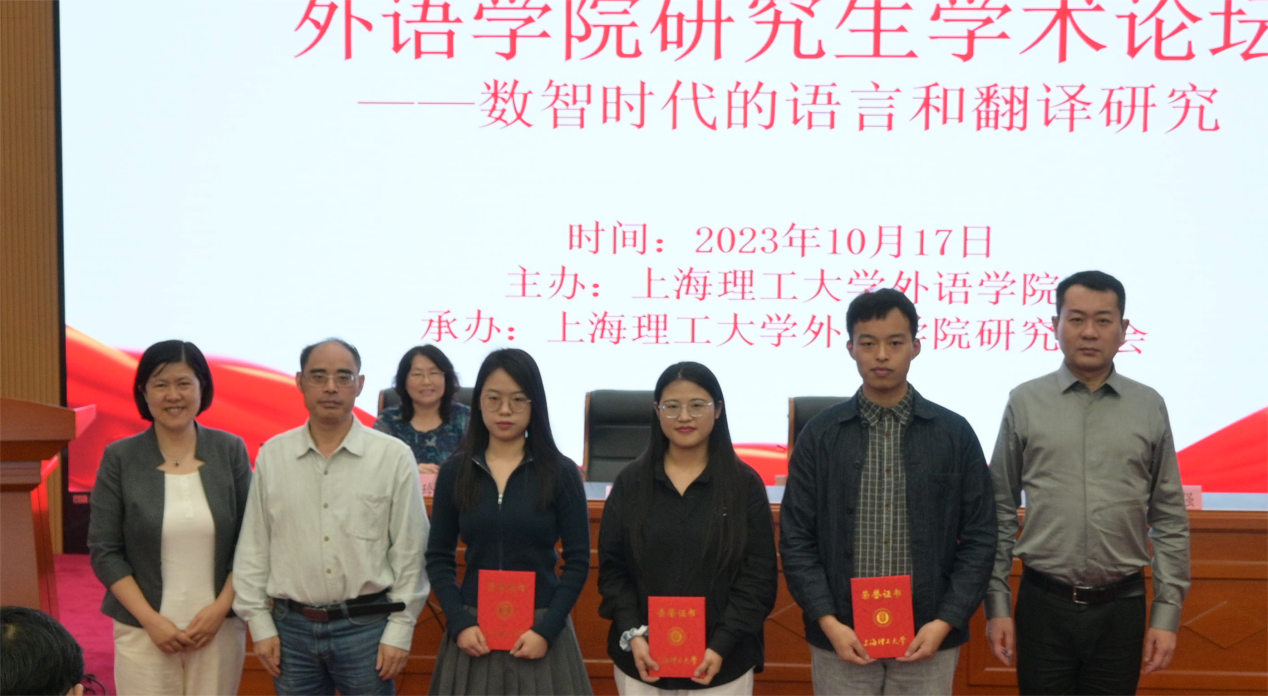 本次论坛共收到稿件31篇,经组委会评审,录用29篇。共设三个专题分论坛:语言学、文学和翻译学研究。与会研究生在分论坛进行现场学术交流,校内外专家对论文进行点评,并提出修改建议。经评审委员会评议,共评选出13篇优秀论文,其中一等奖3篇,二、三等奖各5篇。上海大学外国语学院博士生导师邓志勇教授、beat365党委书记曲德强、院长刘芹、副院长韩戈玲、副院长张乐、评委王勇、倪锦诚、高文成、张顺生、金文宁、王影君老师为获奖同学颁奖。