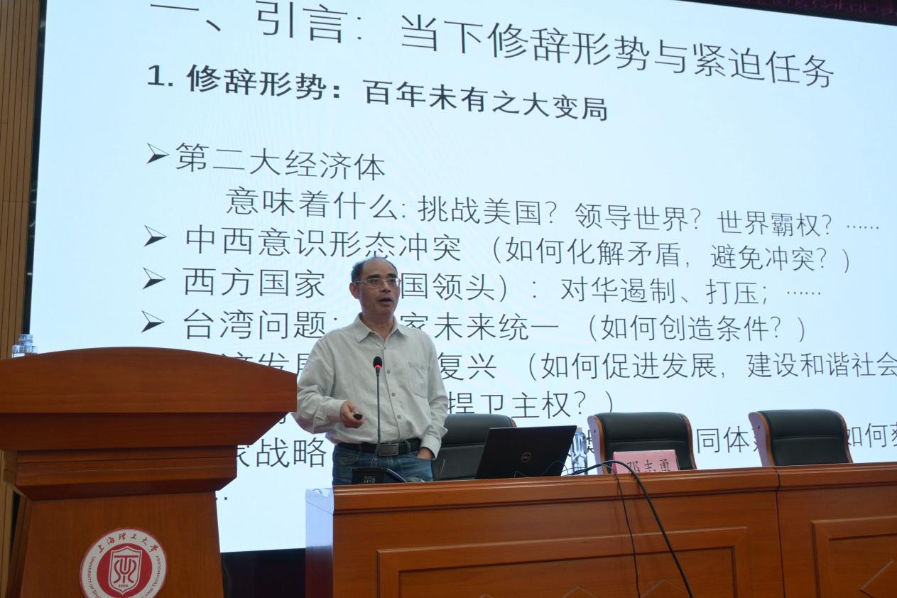 令人振奋的颁奖仪式结束后,邓教授为同学们做题为“本质的时间化:修辞策略及当下意义”的学术专题讲座。邓教授着眼当下修辞的形势与紧迫任务,系统论述了“本质的时间化”的基本概念及哲学基础、“本质的时间化”与诱发合作、“本质的时间化”在理论和实践上对当下的修辞任务的重要启示,引经据典进行阐释。邓教授生动详明的讲座内容和治学严谨的研究方法给在座师生很大的启发。beat365高文成教授就“隐喻是对本质的时间化还是对本质的跨越化”的问题与邓教授进行深入交流。邓教授深入浅出的讲解使得在场学生获益匪浅。