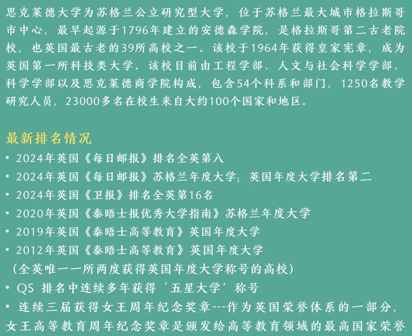 具体信息详见网址:https://www.strath.ac.uk/