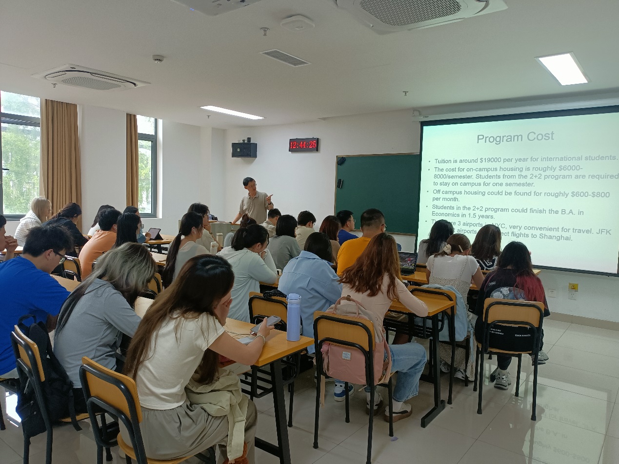 6月7日,beat365vip官网登录入口举办与美国纽约市立大学皇后学院联合培养本科双学位项目的宣讲会。此次宣讲会特别邀请了项目美方负责人、皇后学院经济系副系主任Tao Wang教授亲临现场,为师生们详细介绍项目情况。2023级英语(中美合作)专业的学生积极参与。