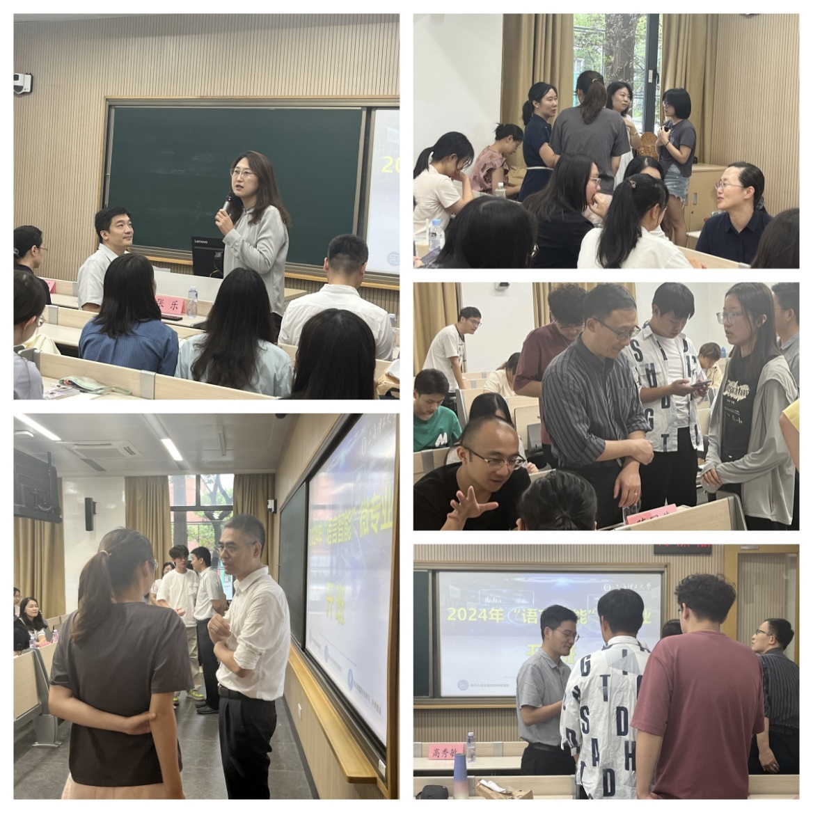 张乐副院长、高秀敏副院长热忱欢迎参加微专业项目的全体同学,向学校对微专业建设的支持表示感谢。他们认为,在国家一体推进教育、科技、人才事业发展的大背景下,语言智能作为典型的文工融合交叉学科具有巨大发展前景,人才培养迫在眉睫。他们就加强课程的前沿性和创新性,加强校企合作、实践实训、跨领域合作交流等方面提出了要求。