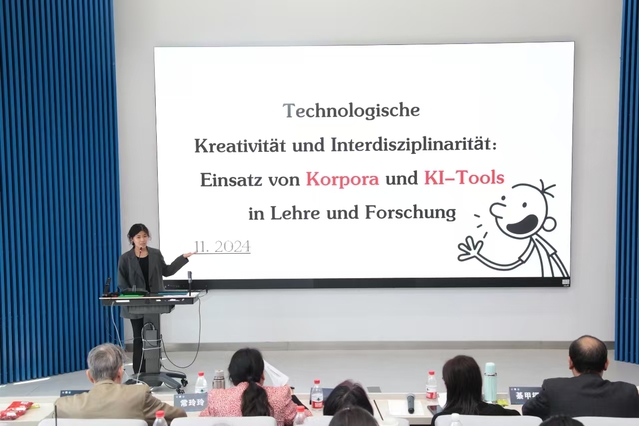 11月3日上午的决赛包含5分钟演讲和5分钟答辩环节,beat365德语系代表队凭借选题Technologische Kreativität und Interdisziplinarität:Einsatz von Korpora und KI-Tools in Lehre und Forschung(技术创新与跨学科融合:语料库与人工智能工具在教学与科研中的应用)斩获全国二等奖。