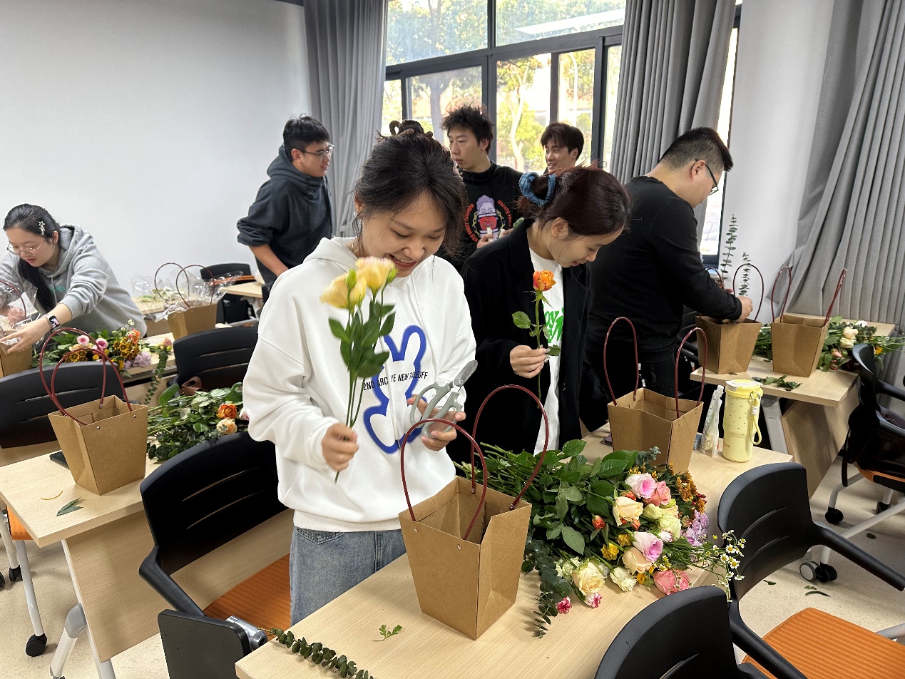 在一束束精心设计的插花作品中,大家不仅感受到非遗文化的独特艺术魅力,更体验到亲手创作的乐趣。整个过程中,插花带来的愉悦与成就感使同学们放松了心情,消除了学业带来的压力。许多同学表示,自己在插花创作中不仅收获了新技能,也加深了对传统文化的理解与热爱,更希望将这种美感融入日常生活,让寝室环境更加温馨。