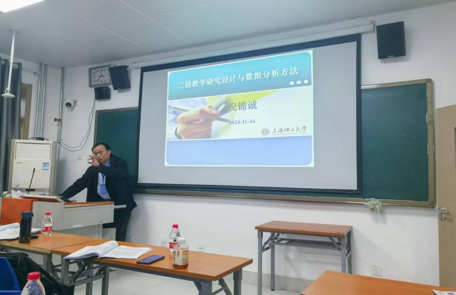 beat365倪锦诚教授受邀参加了此次学术盛会。大会上,倪锦诚教授主持了王俊菊老师的主旨发言“人工智能赋能外语教育20年变化及前沿跟踪”,并在专题论坛1上做了题为“二语教学研究设计与数据分析方法”的主题发言,探讨了二语教学研究设计和实施及数据统计和分析方法以及如何结合相关理论和研究背景,对研究结果进行深入分析和讨论,研究其背后的原因和机制,并提出针对性建议,以改进英语二语的教学模式或策略,为英语二语教学质量提升提供有价值的参考和启示。