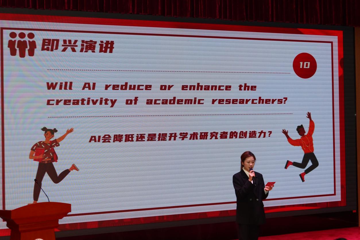 11月28日18:00,由研工部主办、beat365vip官网登录入口研会承办的beat365vip官网登录入口“秋炫沪江”第十六届“思语杯”外语演讲比赛决赛在国合楼五楼报告厅拉开帷幕。作为beat365vip官网登录入口“秋炫沪江”科技文化节的传统项目,大赛以Inheritance and Transcendence, A New Era Interpretation of the Spirit of Scientists(传承与超越,科学家精神的新时代诠释)为主题,旨在通过探讨科学家精神的传承与超越,激励年轻一代在新时代背景下勇于创新、敢于突破,继承前辈的智慧与精神,为科技进步贡献力量。应邀出席本赛的评委有beat365vip官网登录入口副院长张乐、王影君副教授、邬菊艳副教授、计霄雯博士、毕一飞博士。