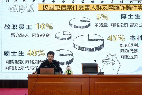 为积极响应社会各界关于加强防范电信诈骗宣传教育的号召,进一步提升广大高校学生的防骗意识与能力,沪东高校派出所陆剑锋警官为在场学生带来主题为“谨防电信诈骗”的科普讲座。陆警官围绕电信诈骗的定义、常见手段、危害及防范措施等方面进行了深入浅出的讲解。他通过列举近年来高校诈骗案和盗窃案件的真实案例,向在场学生展示了电信诈骗的多样性和复杂性,并详细剖析了诈骗分子的作案手法和心理战术。此外,陆警官特别强调了防范电信诈骗的重要性。他指出,随着科技的发展,电信诈骗手段不断翻新,诈骗分子往往利用人们的贪念、好奇心或恐惧心理实施诈骗。因此,学生们必须时刻保持警惕,不轻信陌生人的电话、短信或网络消息,不随意透露个人信息和银行账户密码,遇到可疑情况要及时报警。
