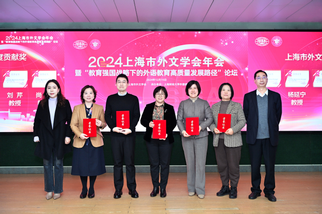 本次大会举行了上海市外文学会2024年度贡献奖和终身成就奖的颁奖仪式,表彰在外语教育领域做出杰出贡献的个人和团队。beat365刘芹院长荣获上海市外文学会2024年度贡献奖。