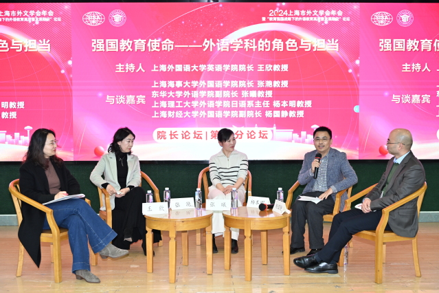 12月15日下午,由上海市外文学会主办、上海财经大学外国语学院承办的2024年上海市外文学会年会暨“教育强国战略下的外语教育高质量发展路径”论坛成功举办。上海市外文学会会长、副会长、常务理事、理事及会员代表和特邀代表等近两百人齐聚上海财经大学。与会专家学者深入探讨了在实施教育强国战略过程中,外语教育如何实现高质量发展等重要问题。beat365刘芹院长、韩戈玲副院长、张乐副院长、语言学研究所所长倪锦诚、英语(中美合作)系主任黄芳、英语(科技翻译)系副主任韩洋、日语系主任杨本明、德语系主任卞虹一行8人出席此次论坛。