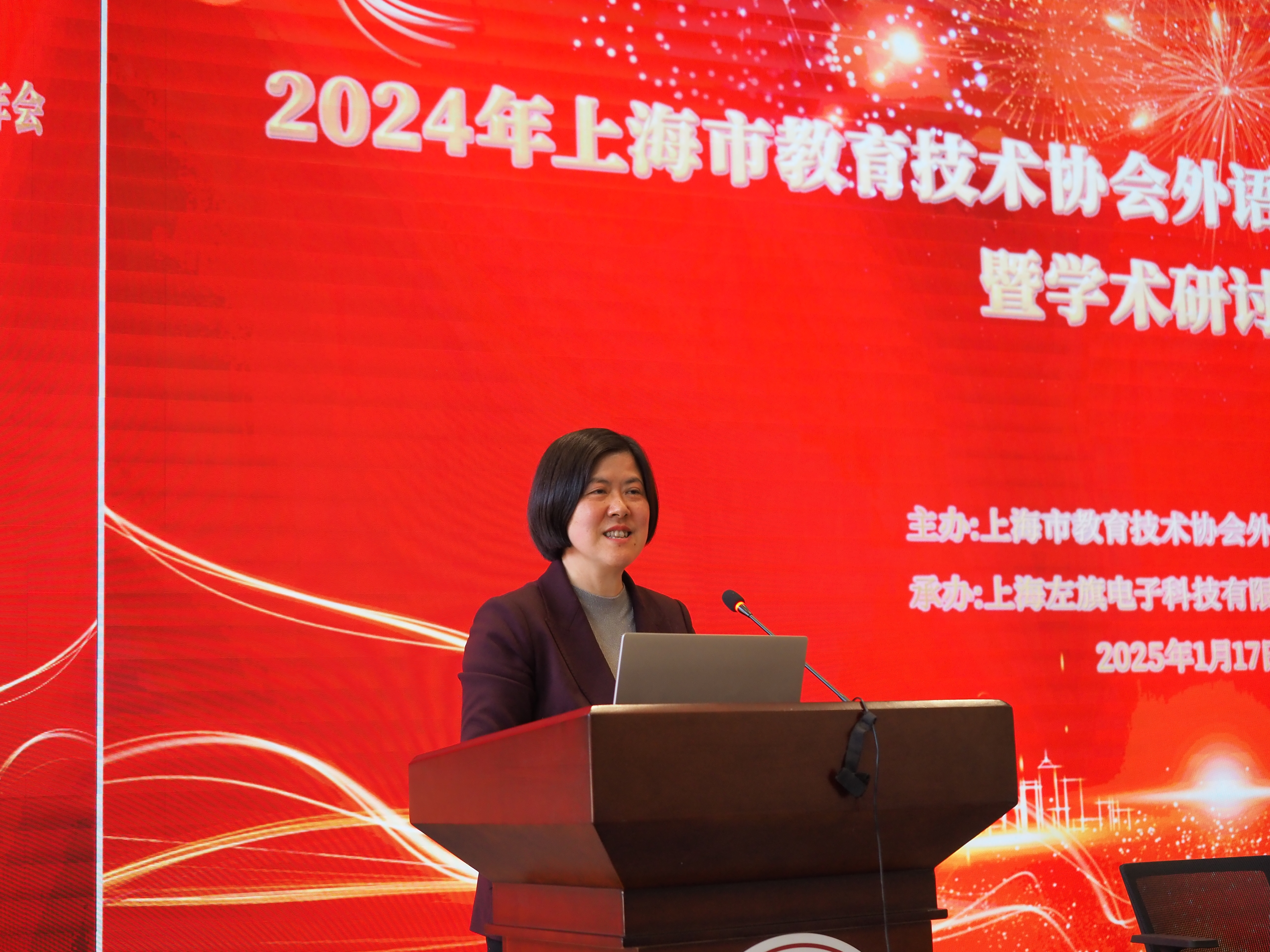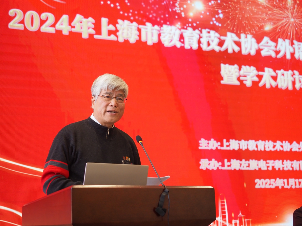 上海市教育技术协会外语专业委员会会长、上海外国语大学陈坚林教授作了2024年上海市教育技术协会外语专业委员会工作报告。报告回顾了协会自1983年成立以来的发展历程,并总结了2024年度的主要工作成果,涵盖12项重要活动。陈教授强调,在党的教育方针指引下,协会秉持产学研结合的理念,致力于推广外语教育经验,加强校企合作,推动多项学术研究,并成功举办了优秀论文评选活动。他特别指出数字化转型对外语教学的重要性,鼓励参会教师探索技术、教材和教学内容三者之间的关系,以促进外语教学的内涵发展。展望2025年,陈教授描绘了教育智慧化的蓝图,明确表示将把外语教育智能化作为未来工作的核心目标。