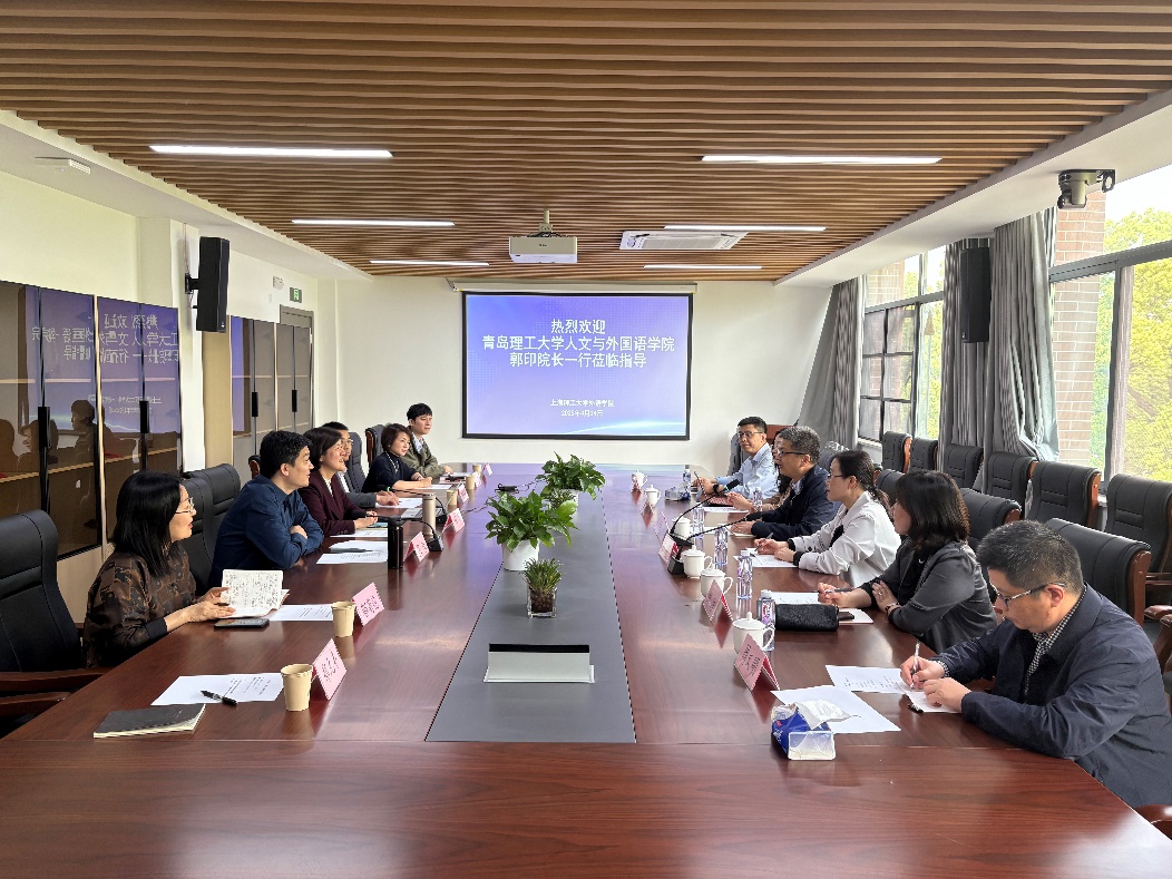 4月24日上午,青岛理工大学人文与外国语学院院长郭印一行六人来beat365调研。beat365vip官网登录入口院长刘芹、副院长张乐和相关系、中心负责人参加了座谈会。会议由刘芹主持。