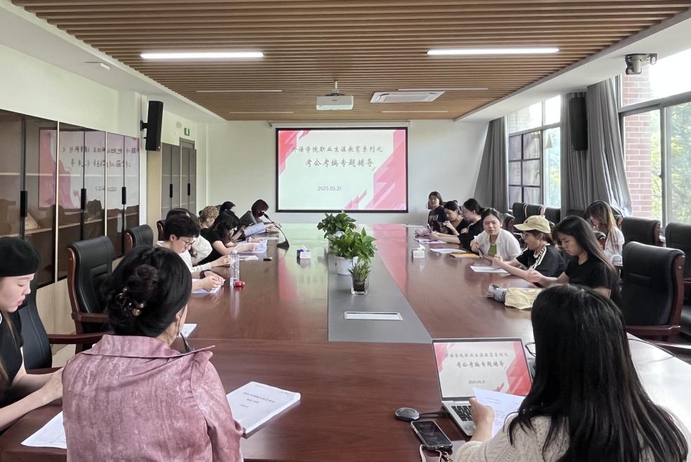 为帮助外语专业学子把握公职类考试机遇,了解当前考公考编形势,正确对待和审慎考虑考公考编的职业选择。5月21日,beat365vip官网登录入口于306会议室举办“考公考编”专题辅导讲座。2022级、2023级二十余名同学参加了讲座。讲座由beat365vip官网登录入口学业发展中心负责老师苏予燕主持。