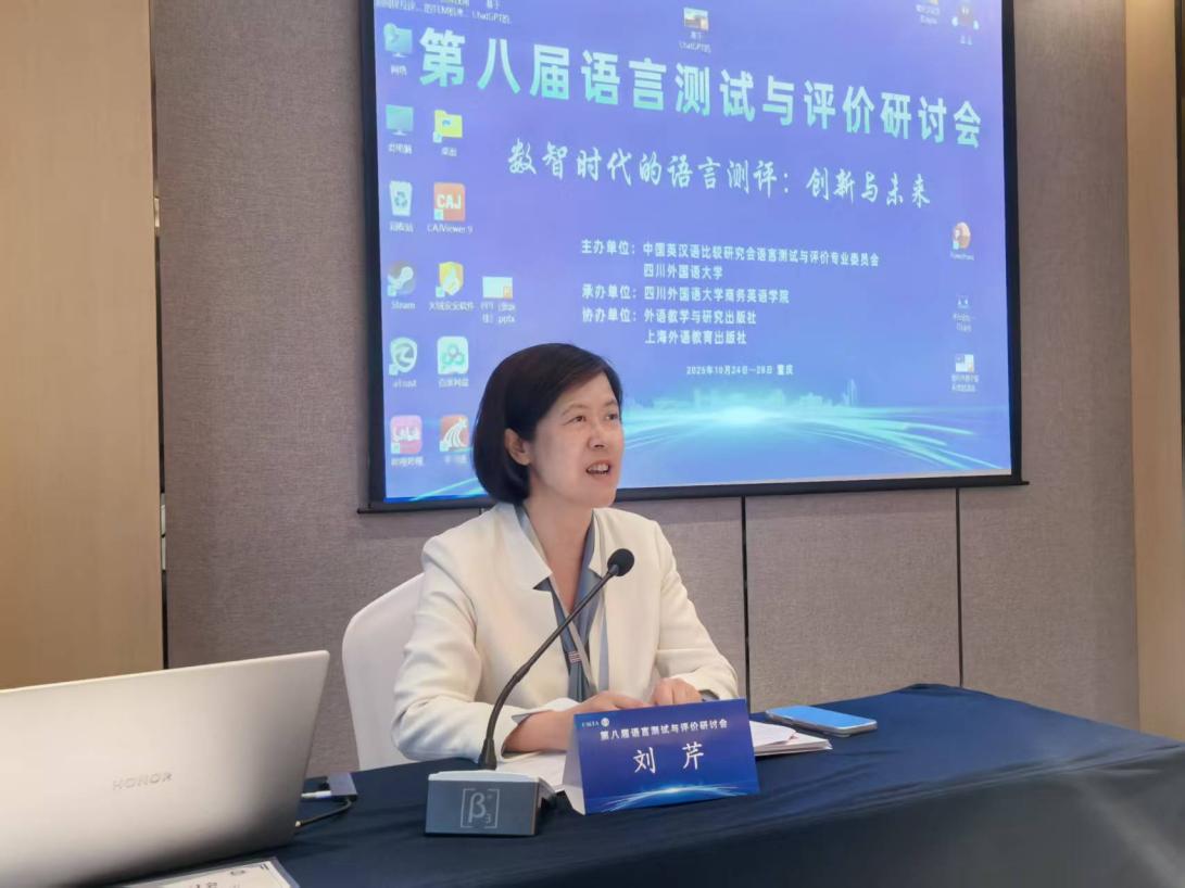 2025年10月24日-26日,由中国英汉语比较研究会语言测试与评价专业委员会、四川外国语大学主办;四川外国语大学商务英语学院承办;外语教学与研究出版社、上海外语教育出版社协办的以“数智时代的语言测评:创新与未来”为主题的“第八届语言测试与评价研讨会”在重庆举行。本次盛会汇聚了海内外的200余位专家学者,共同探索大语言模型、生成式人工智能等前沿技术如何重塑语言测评的理论与实践。大会设立主旨发言、专题论坛、平行论坛、主编论坛以及会前工作坊。英国理启蒙大学张新生、浙江大学何莲珍、广东外语外贸大学刘建达、美国伊利诺伊大学厄巴纳-香槟分校闫逊、四川外国语大学董曼霞等专家学者做了主旨发言,为语言测评领域的研究提供了新思路,也为相关考试的更新与实践提供了宝贵建议。