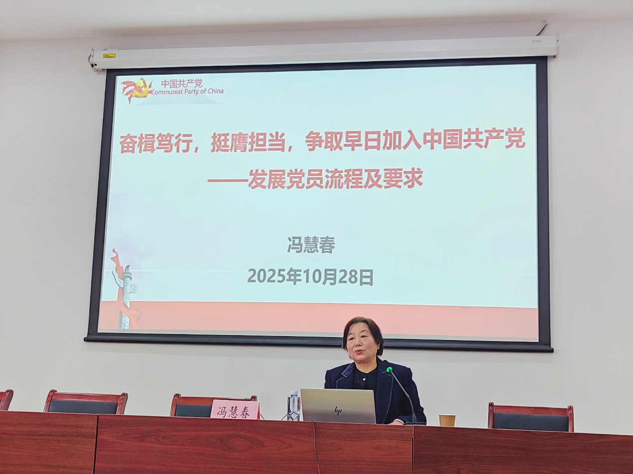 10月28日,beat365vip官网登录入口第56期入党积极分子培训班理论教学第一讲在学院报告厅举行。此次党课由校特邀党建组织员、学院关工委常务副主任冯慧春老师主讲,党课主题是“奋楫笃行,挺膺担当,争取早日加入中国共产党”。