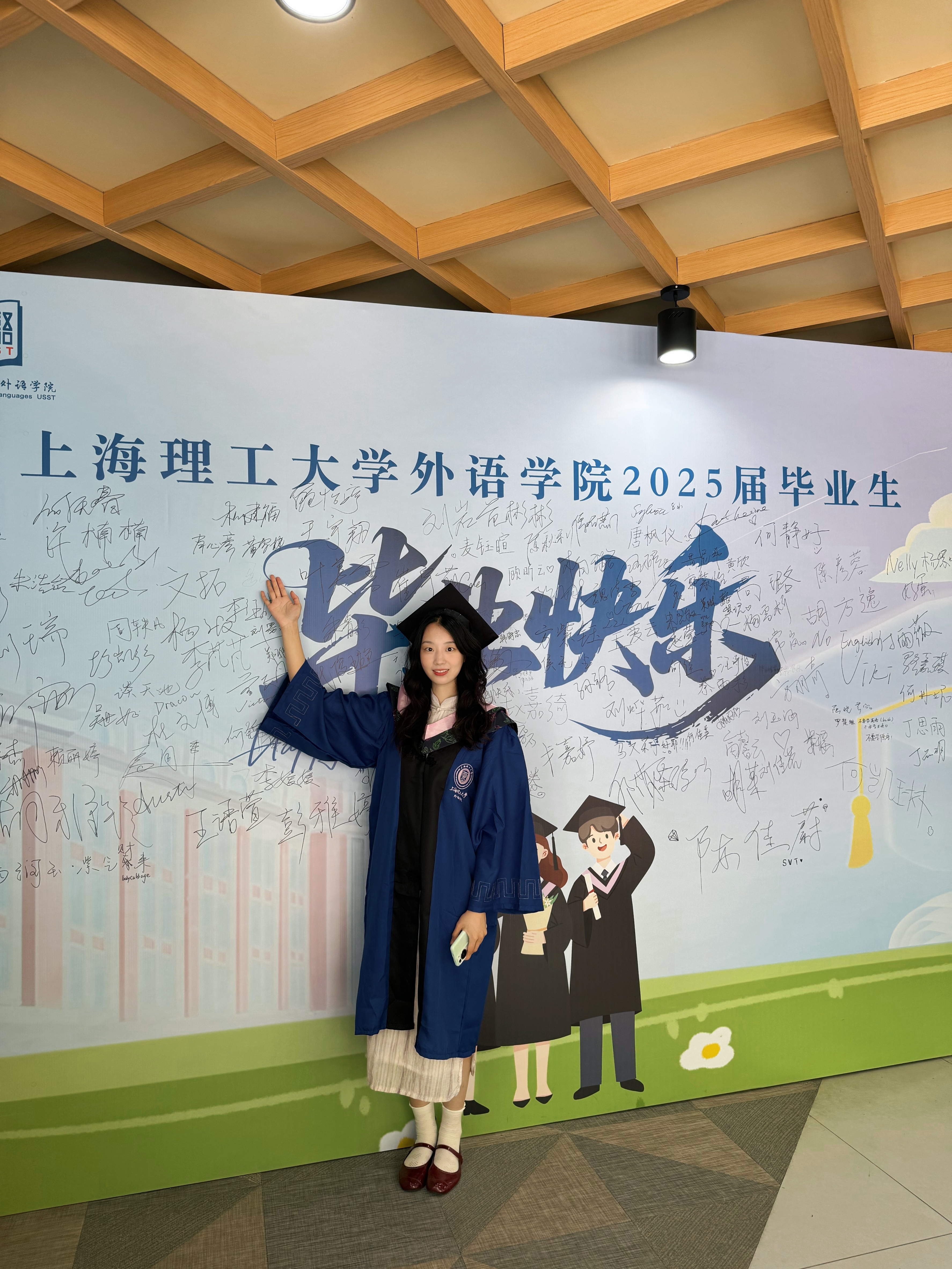 毕业后,凭借扎实的笔译功底和对英语教学的热情,成功入职浦东的一所中学。在教学中,她将笔译专业的优势发挥得淋漓尽致:讲解语法时,她结合翻译实例拆解语言逻辑,让抽象的语法规则变得具象易懂;拓展阅读时,她引入经典文本的中英互译案例,引导学生体会语言的美感与文化差异;批改作文时,她以笔译的严谨态度,逐字逐句打磨学生的表达,帮助他们构建精准、流畅的英语思维。她说:“英语笔译教会我的不仅是语言转换,更是对语言的敬畏与对文化的理解。基础教育正是需要这样的专业底色,让学生真正读懂英语、用好英语。”